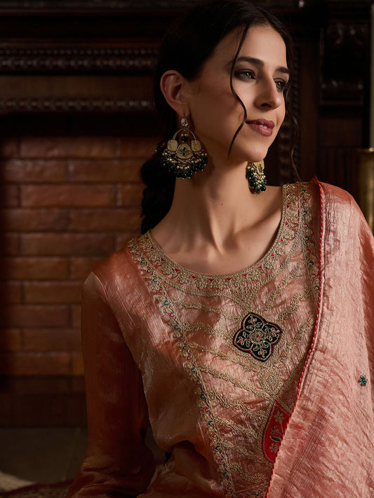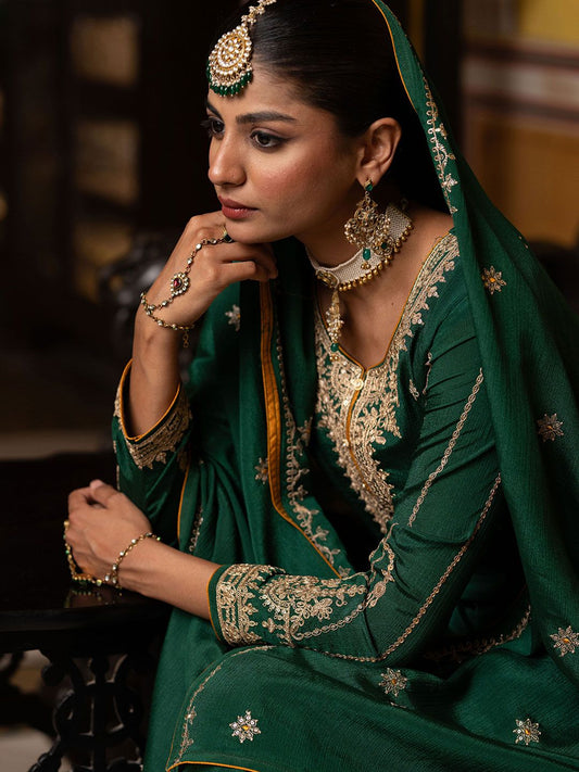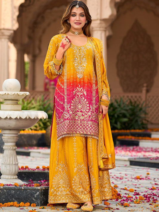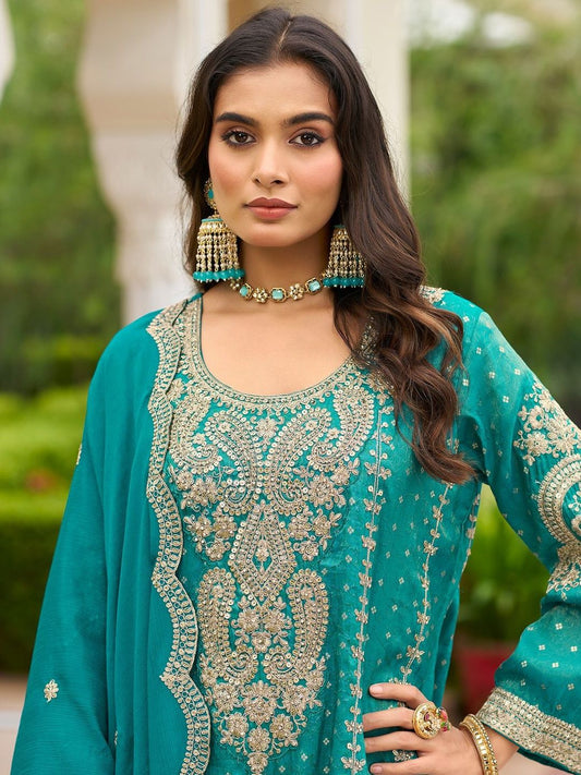 Dhiyona CH Women Zari Sequence Embroidered Kurta with Palazzos & Dupatta