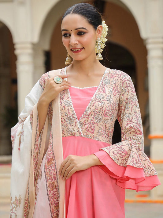 Dhiyona CH Floral Embroidered Panelled Anarkali Kurta with Trousers & Dupatta