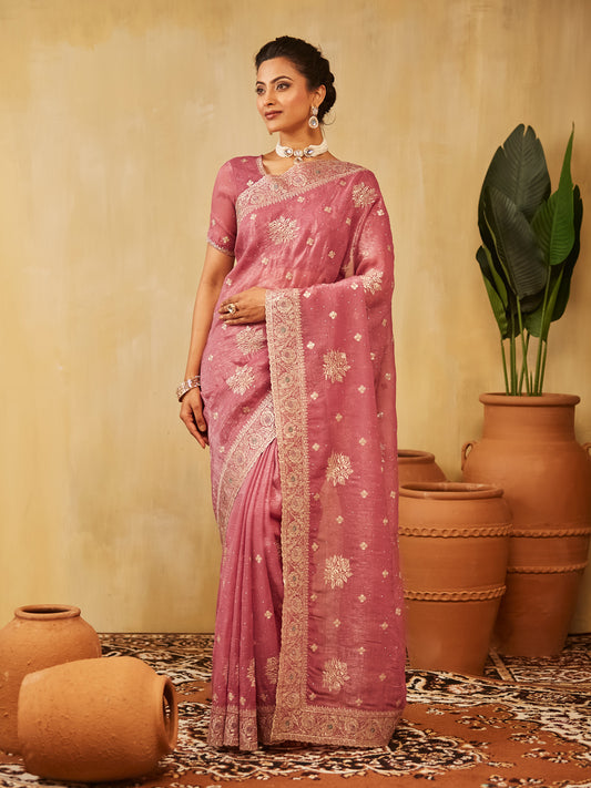 Dhiyona KS Women's Embellished Beads and Stones Pure Silk Saree