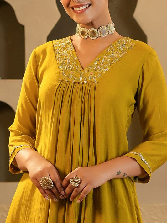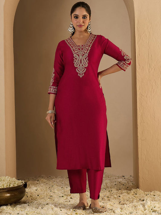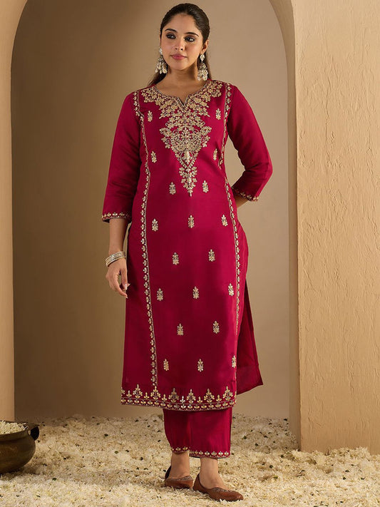Dhiyona IE Women's Women Ethnic Motifs Embroidered Chanderi Silk Kurta with Trousers