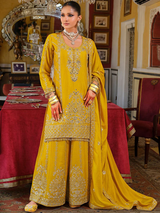 Dhiyona IE Women's Ethnic Motifs Embroidered Mirror Work Kurta with Palazzos & Dupatta