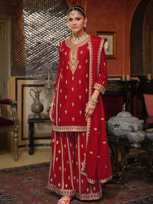 Dhiyona IE Women's Ethnic Motifs Embroidered Zari Kurta with Trousers & Dupatta