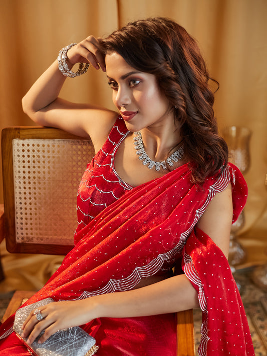 Dhiyona KS Women's Embellished Embroidered Pure Chiffon Saree