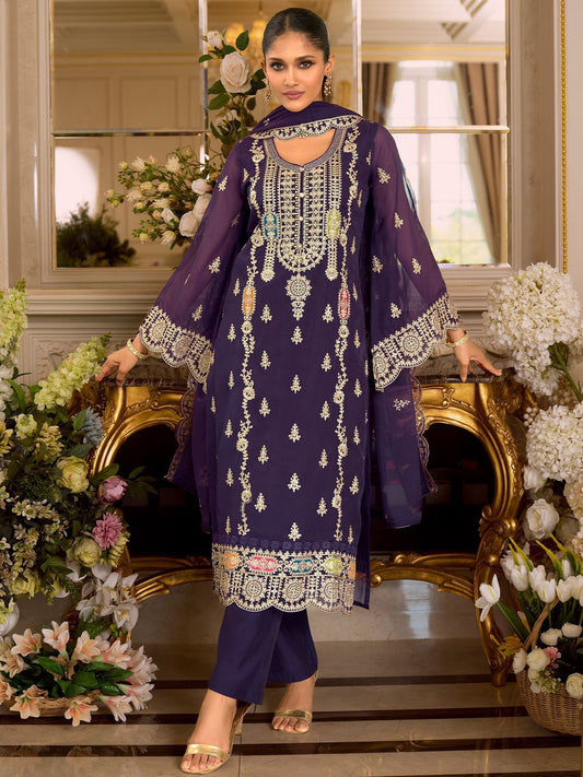 Dhiyona IE Women's Ethnic Motifs Embroidered Thread Work Straight Kurta With Trousers & Dupatta