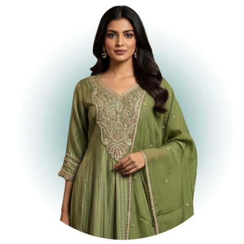 At Dhiyona, we are passionate about offering you the finest quality at competitive prices. Our vertically integrated operations based in India, allow us to oversee the entire production process, ensuring that you receive only the best. We source the finest fabrics and materials to ensure that each piece not only looks stunning but also feels luxurious to wear. Our artisans and Vendors bring centuries-old techniques to life, infusing each garment with handcrafted embellishments, intricate embroidery, and exquisite detailing. We believe that every woman deserves to feel beautiful and confident, and our mission is to create fashion that empowers you to embrace your heritage while expressing your unique style.
