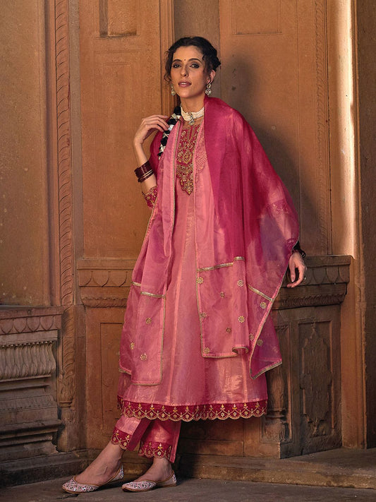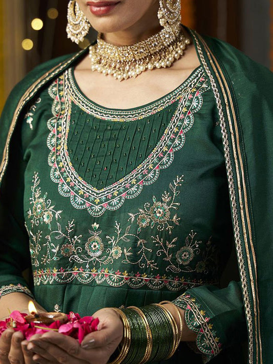 Dhiyona CH Floral Embroidered Panelled Anarkali Kurta with Trousers & Dupatta