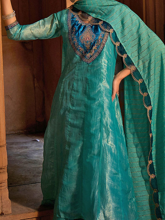Dhiyona CH Women Zari Sequence Embroidered Kurta with Palazzos & Dupatta