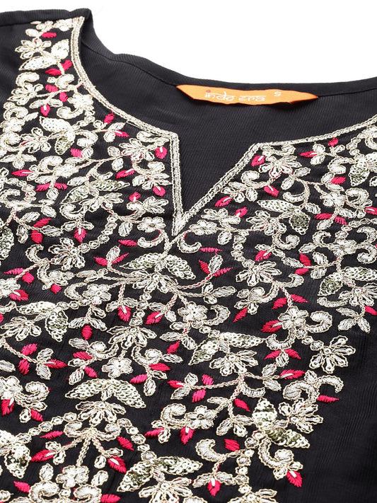 Buy 2 Get 1 FreeVendor:Dhiyona IEDhiyona IE Floral Embroidered Sequinned Chinon Straight Kurta With Sharara & Dupatta