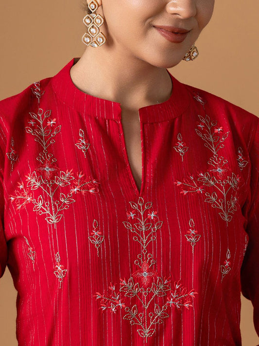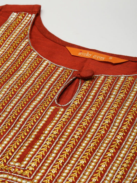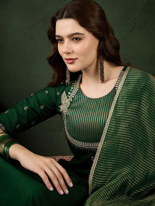 Dhiyona IE Plus Size Ethnic Motifs Embroidered Zari Kurta with Trousers & Dupatta