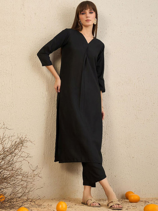 Dhiyona IE V Neck Pleated Straight Kurta With Trousers