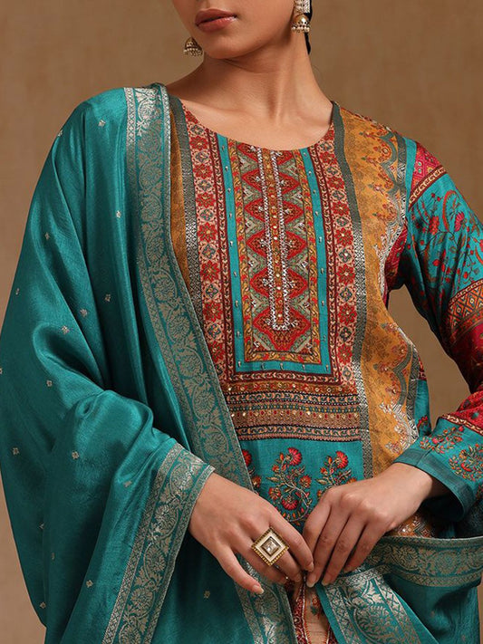 Dhiyona VV Women's Silk Blend Kurta Pant Dupatta Set