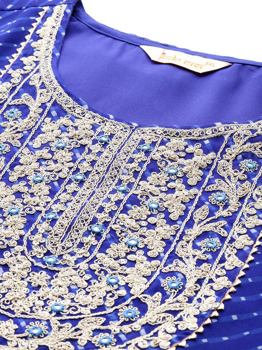 Dhiyona IE Plus Size Leheriya Printed Zari Kurta with Trousers & Dupatta
