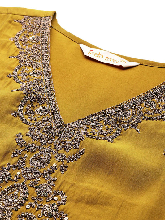 Buy 2 Get 1 FreeVendor:Dhiyona IEDhiyona IE Floral Embroidered Regular Sequinned Liva Kurta with Trousers & Dupatta