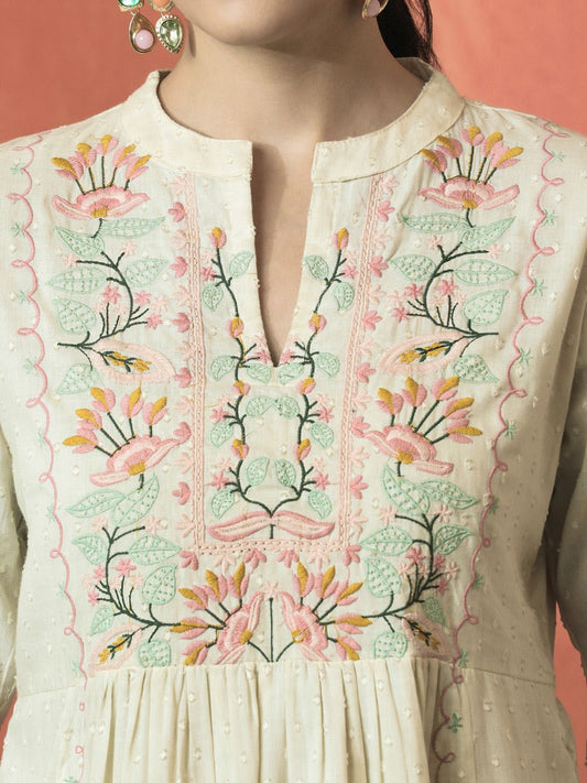 Buy 2 Get 1 FreeVendor:Dhiyona SNDhiyona SN Women's Floral Embroidered Mandarin Collar Cotton A-Line Kurta With Trouser & Dupatta