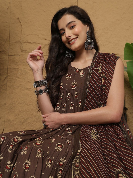 Buy 2 Get 1 FreeVendor:Dhiyona SNDhiyona SN Women's Ethnic Motifs Printed Cotton Anarkali Kurta with Trousers & Dupatta