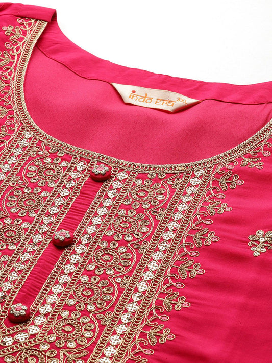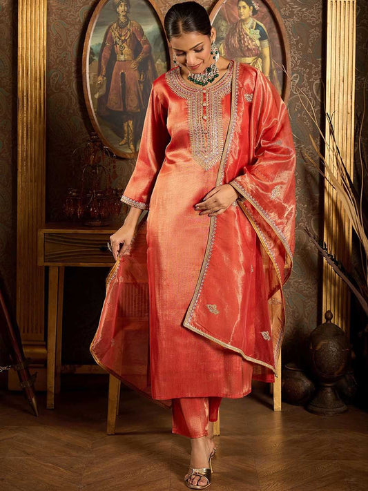 Buy 2 Get 1 FreeVendor:Dhiyona SNDhiyona SN Women's Zari & Sequin Cording Embroidered Straight Kurta & Trousers With Dupatta