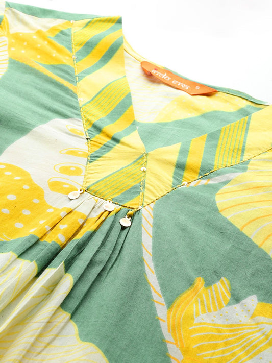 Buy 2 Get 1 FreeVendor:Dhiyona IEDhiyona IE Floral Printed Pleated Sequinned Pure Cotton Kurta with Palazzos