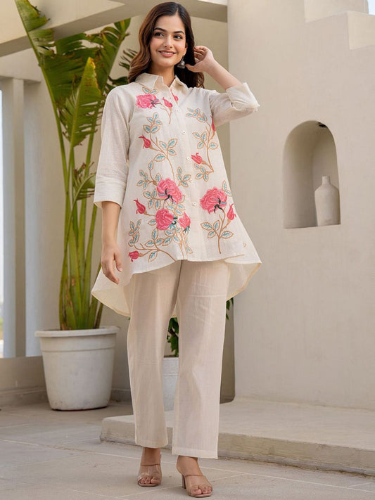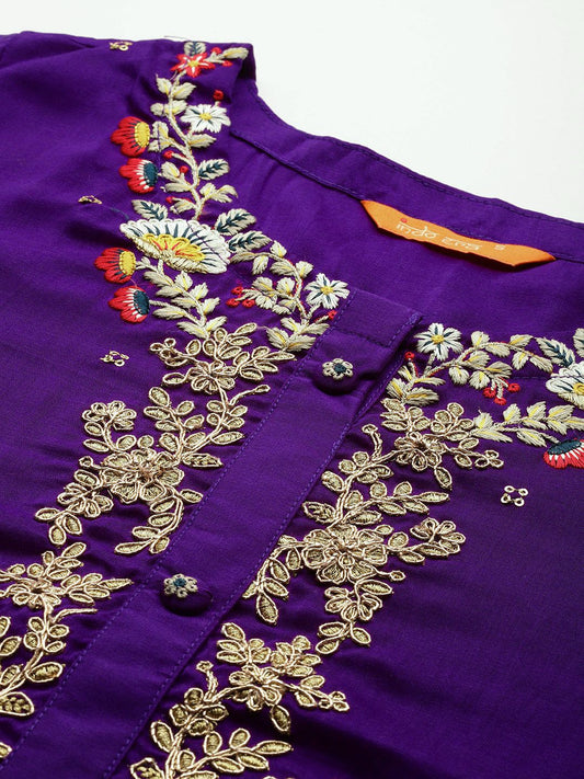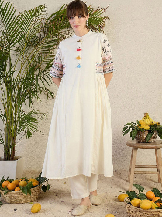 Buy 2 Get 1 FreeVendor:Dhiyona IEDhiyona IE Floral Embroidered Thread Work Pure Cotton A-Line Kurta With Trousers