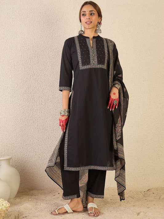 Buy 2 Get 1 FreeVendor:Dhiyona IEDhiyona IE Ethnic Motifs Printed Sequinned Pure Cotton Kurta with Palazzos & Dupatta