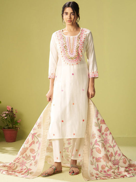 Buy 2 Get 1 FreeVendor:Dhiyona IEDhiyona IE Floral Embroidered V-Neck Thread Work Straight Kurta with Trousers & Dupatta