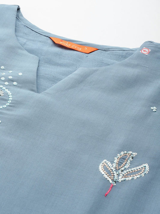 Dhiyona IE Women Floral Embroidered Regular Sequinned Pure Cotton Kurta with Trousers & With Dupatta
