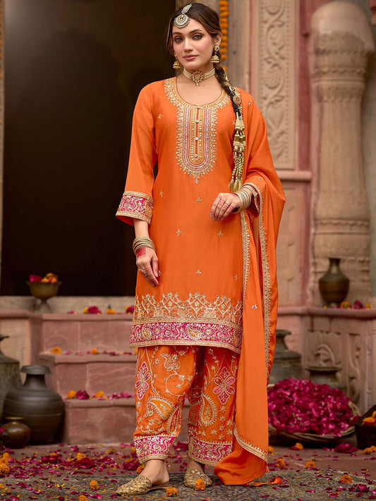 Dhiyona IE Embroidered Kurta with Trousers & Dupatta