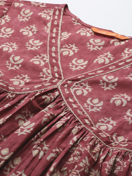 Dhiyona IE Plus Size Floral Printed Pleated Pure Cotton Kurta with Trousers