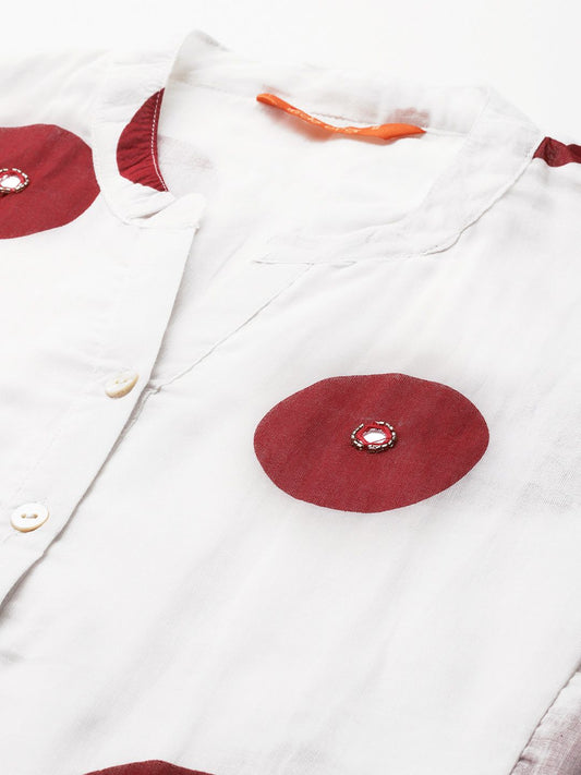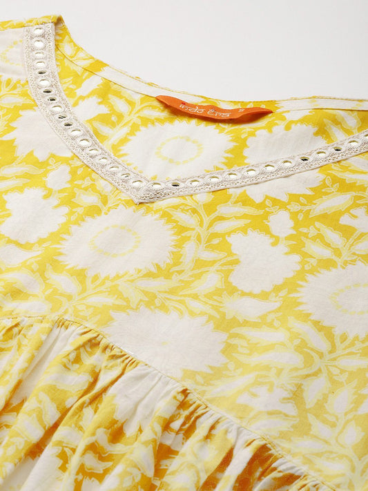 Dhiyona IE Women Floral Printed Empire Mirror Work Pure Cotton Kurta with Trousers & With Dupatta