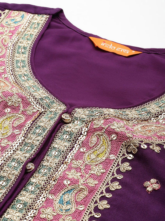 Dhiyona IE Paisley Embroidered Sequinned Kurta with Palazzos & With Dupatta