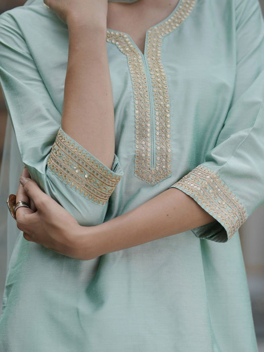 Dhiyona IE Embroidered Round Neck Three-Quarter Sleeves Sequinned Kurta Set