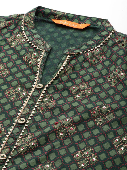 Dhiyona IE Bandhani Printed Sequinned Pure Cotton Kurta With Trousers & Dupatta