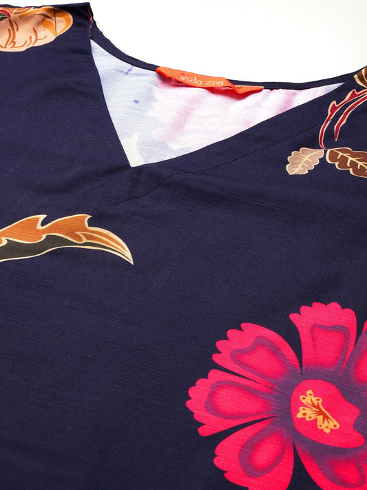 Dhiyona IE Floral Printed V Neck Pure Cotton A-Line Kurta with Trousers