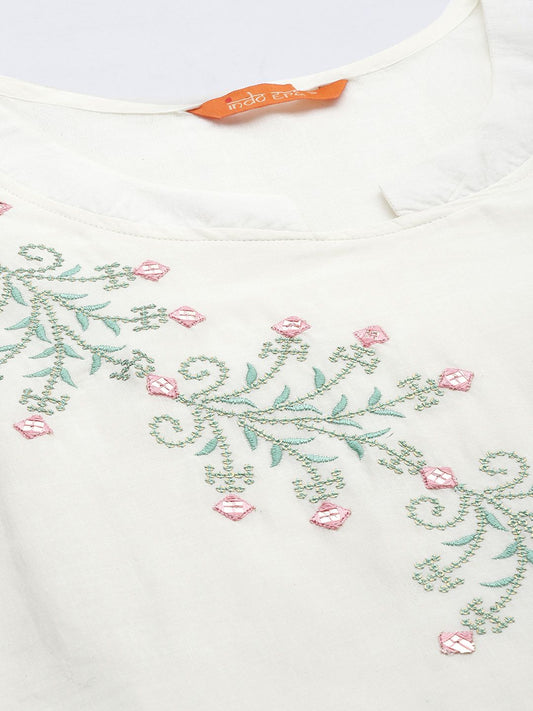 Dhiyona IE Floral Embroidered Mirror Work Panelled Pure Cotton Kurta With Palazzos & Dupatta