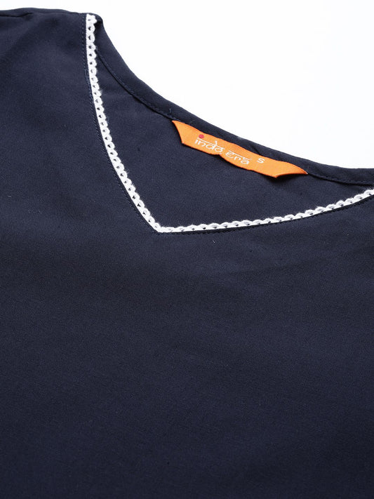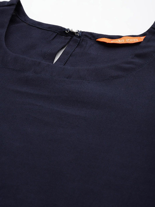 Dhiyona IE Women Navy Blue Embroidered Kurta with Trousers & With Dupatta