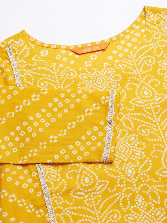 Dhiyona IE Women Yellow Printed Liva Kurta with Palazzos & With Dupatta