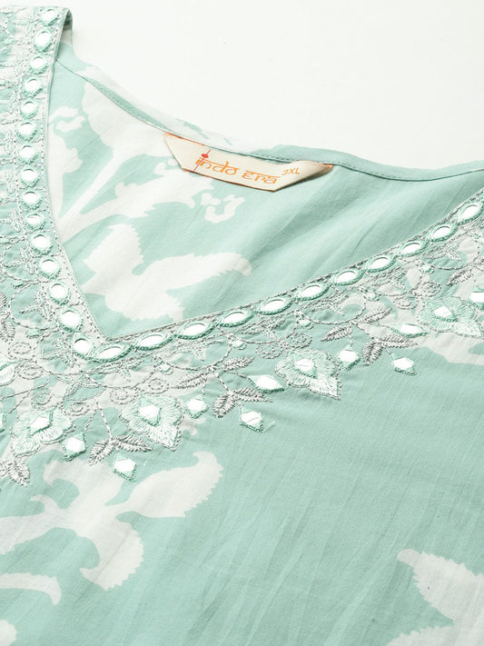 Dhiyona IE Plus Size Floral Embroidered Panelled Mirror Work Pure Cotton Kurta Set