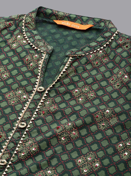 Dhiyona IE Women Green Ethnic Motifs Printed Gotta Patti Kurta with Trousers & With Dupatta