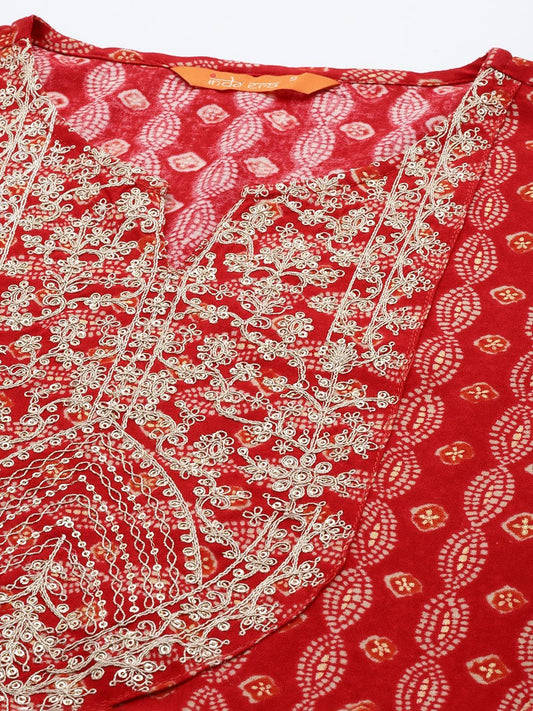 Dhiyona IE Floral Printed Mirror Work Liva A-Line Kurta with Palazzos & Dupatta