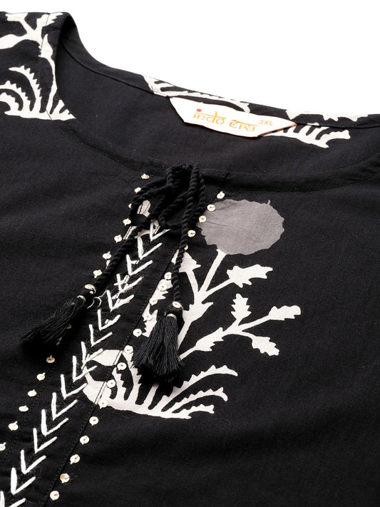 Dhiyona IE Plus Size Floral Printed Sequinned Pure Cotton Kurta with Trousers & With Dupatta