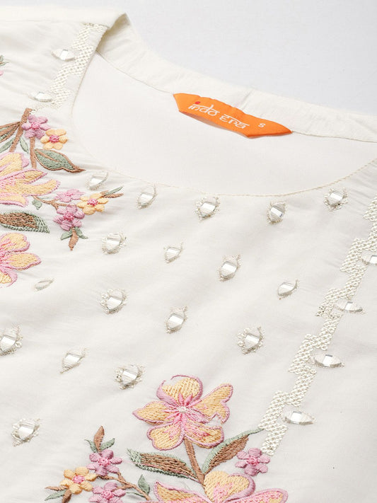 Dhiyona IE Floral Embroidered Thread Work Pure Cotton Kurta With Trousers & Dupatta