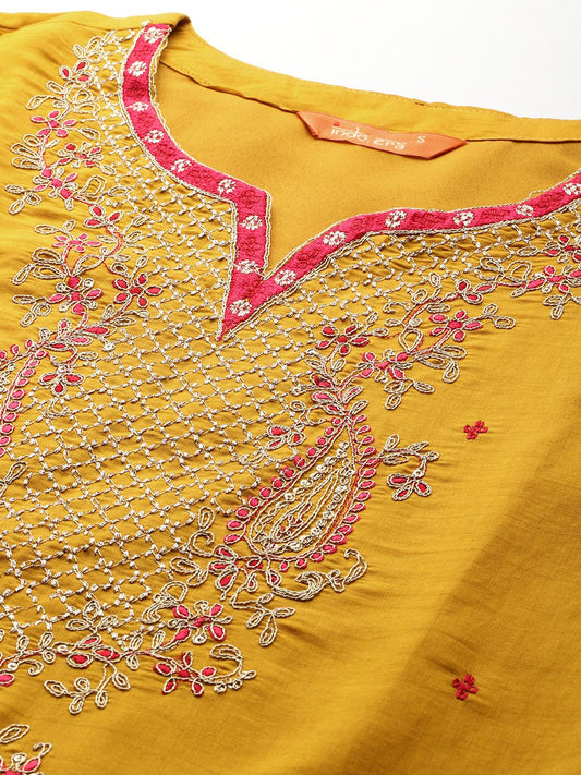 Dhiyona IE Ethnic Motifs Yoke Design Thread Work Kurta with Trousers & With Dupatta