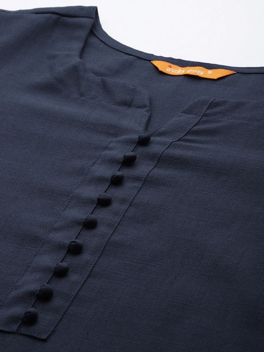 Dhiyona IE Women Navy Blue Kurta with Palazzos & With Dupatta