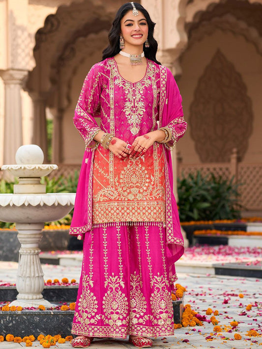 Dhiyona IE Ethnic Motifs Embroidered Sequinned Kurta with Palazzos & Dupatta