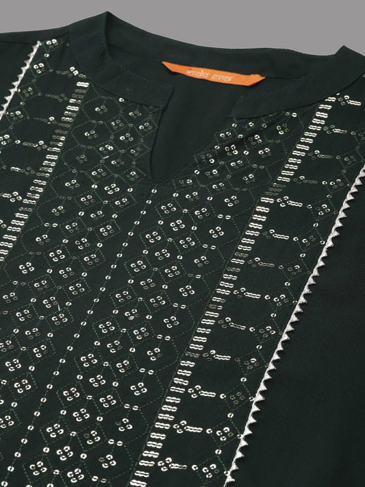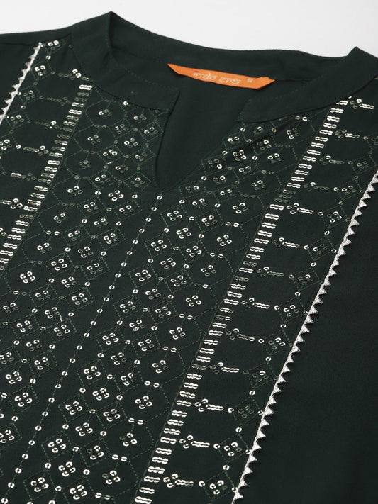 Dhiyona IE Ethnic Motifs Embroidered Straight Sequinned Kurta with Trousers & Dupatta