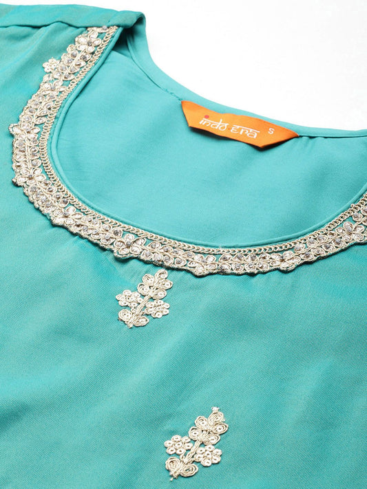 Dhiyona IE Ethnic Motifs Embroidered Regular Sequinned Kurta with Palazzos & Dupatta