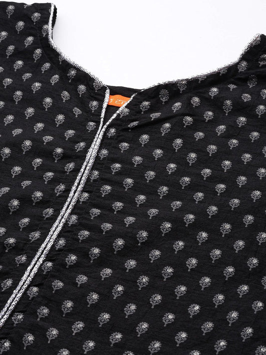 Dhiyona IE Geometric Printed Panelled Sequinned Pure Cotton A-Line Kurta With Trousers