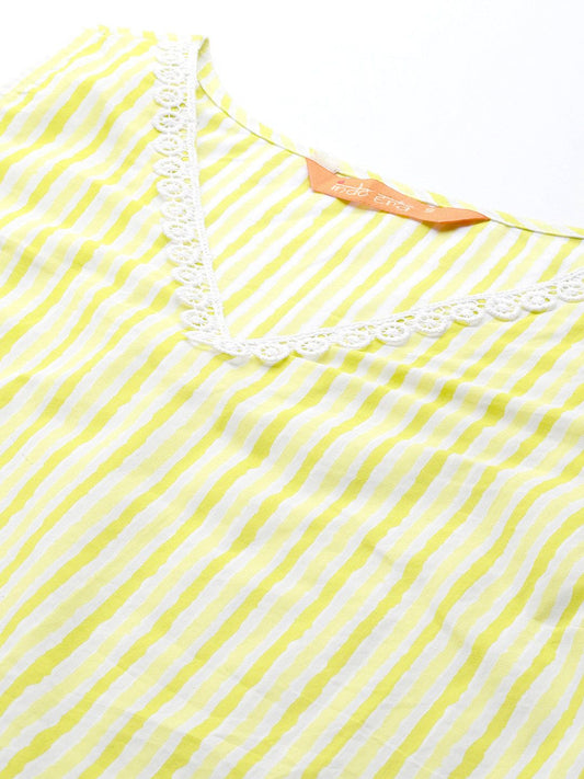 Dhiyona IE Lime Green Silk Blend Scalloped Edge Kurta Set