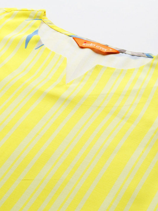 Dhiyona IE Striped Pure Cotton Kurta With Trousers & Dupatta