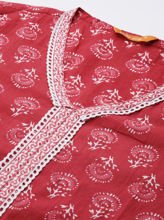 Dhiyona IE Women Red Floral Printed Regular Kurta with Palazzos & With Dupatta