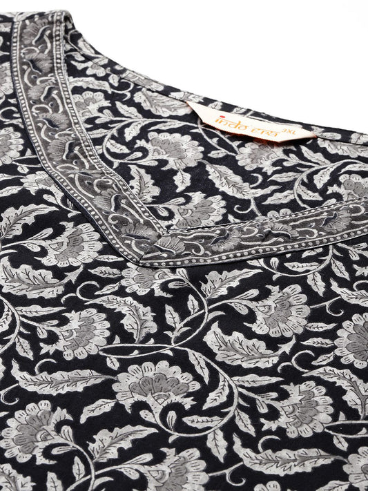 Dhiyona IE Plus Size Floral Printed Fusion Pure Cotton Kurta with Trousers